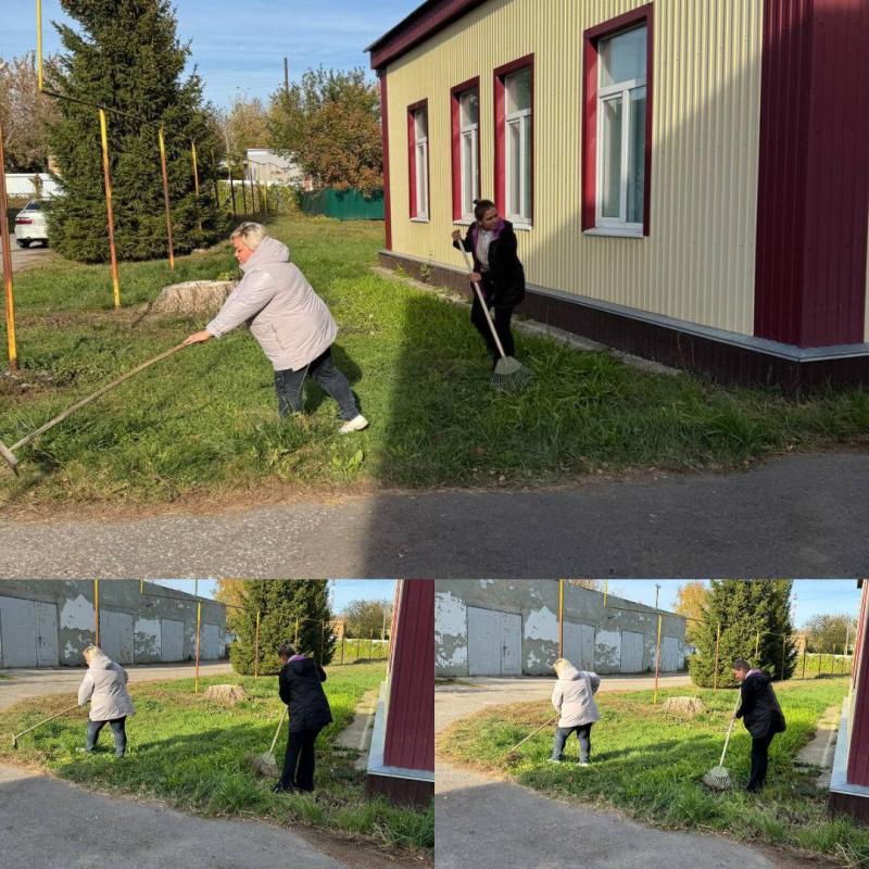 Сотрудники центра активно участвовали в уборке территории, наводя порядок и чистоту вокруг здания.